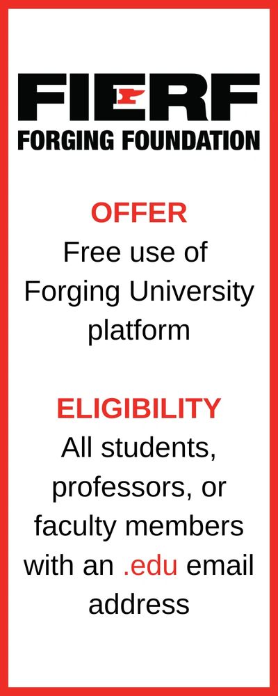 Forging University is designed to assist in your training and development needs. Available 24/7 and in more than one sitting, Forging University allows for training to work around your schedule. The platform provides diverse training topics that range from forging fundamentals, safety, human resources, sales & marketing, and self-development.